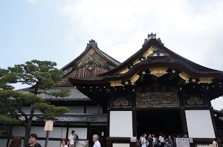 Der Palast der Shogune liegt im Zentrum des alten Kyotos. Der Gebäudekomplex ist ähnlich stark, wenn nicht sogar noch stärker befestigt wie der kaiserliche Palast, der nicht weit entfernt liegt. Man passiert am Eingang erst einmal ein großes Tor in der massiven Mauer, vor der auch ein breiter Graben liegt.