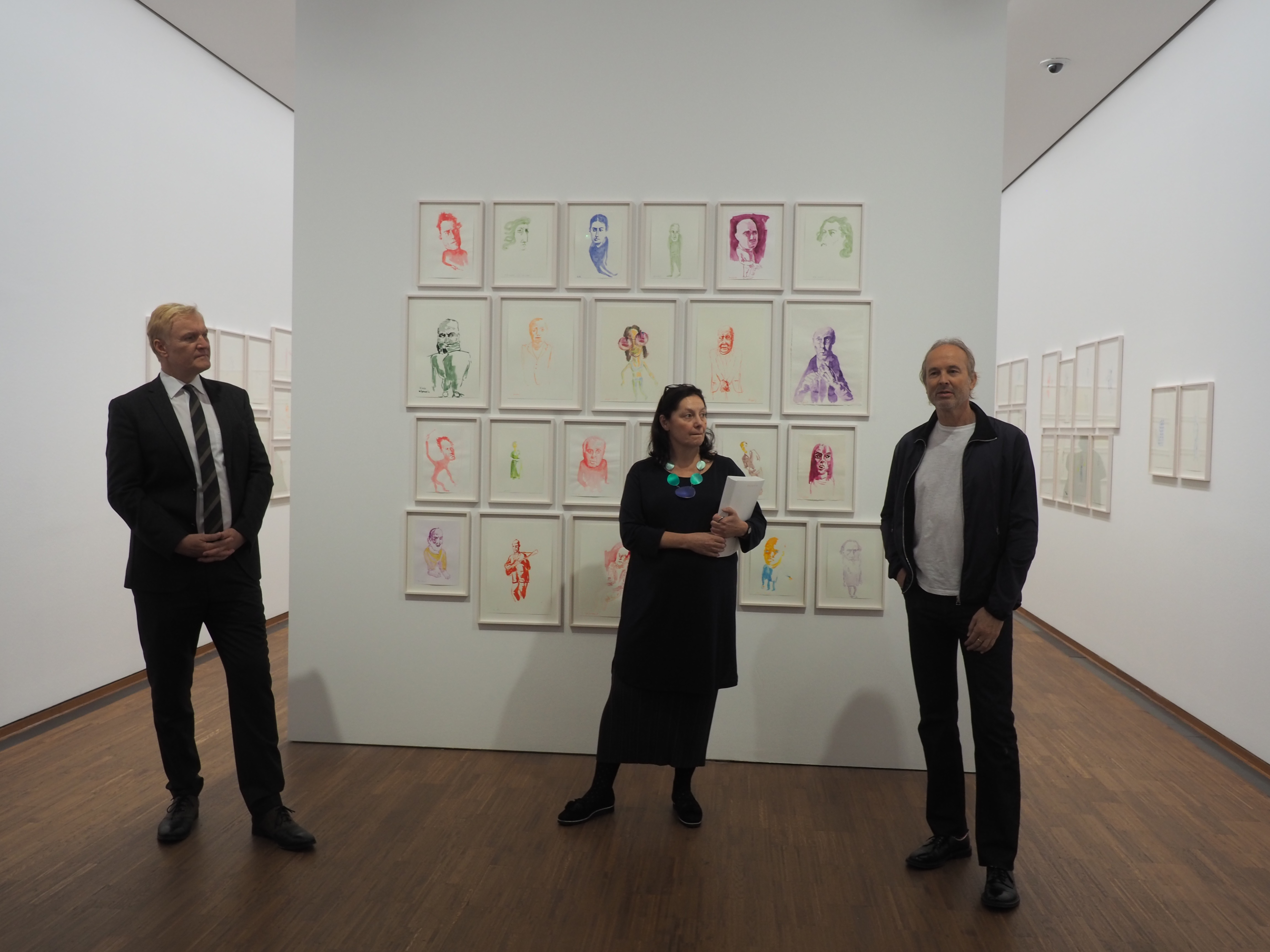 Eigentlich gehört Zeichnen zum Alltag eines Künstlers – auch wenn bisher im Werk Erwin Wurms doch die Skulpturen meist im Vordergrund stehen. Doch diesmal ist es anders – die Albertina stellt mit mehr als 300 Zeichnungen unterschiedlichster Art – von Aquarell bis Bundstifft, von Kugelsschreiber bis Wasserfarbe – aus.