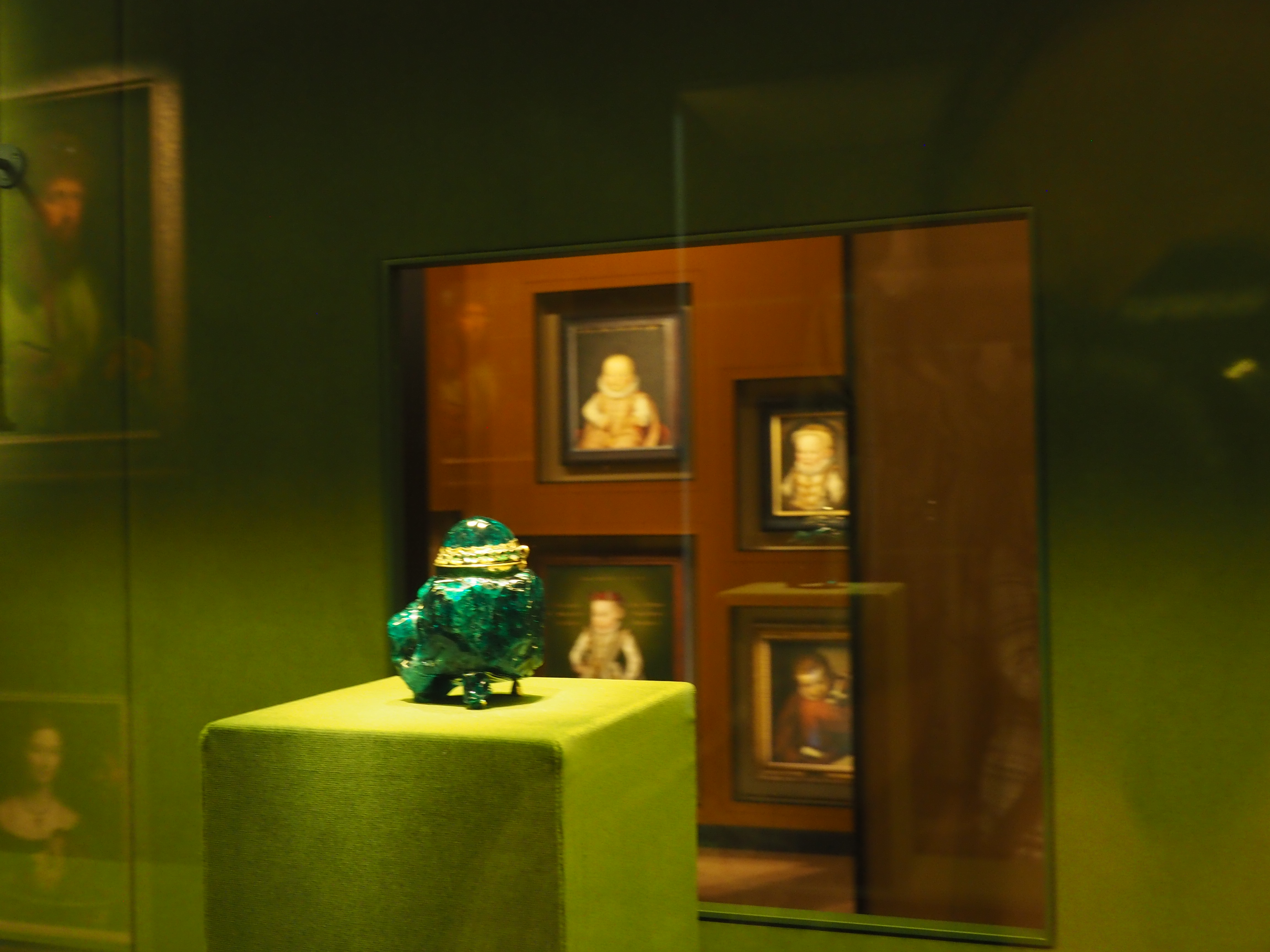 Damit folgen sie den ganz ursprünglichen Prinzipien beim Anordnen einer Wunderkammer, das aus der Renaissance stammt – dabei ging es eben weniger um die Zeit oder die Ursprungsregion, sondern viel mehr um Thema, Farbe oder Material. So gibt es etwa in einem der insgesamt 8 Kabinetten Flaschen aus der Zeit der römischen Kaiser, ein Schurz aus Peru und eine Sammlung prachtvoller Vögel aus Peru, die der Sammlung des Naturhistorischen Museums entnommen wurden. Das einzige, was die Stücke in einen Zusammenhang setzt in diesem „Green Room“ ist die Farbe grün. In einem weiteren der insgesamt 8 Kammern wiederum geht es ausschließlich um Hüllen und Boxen, in dem in etwa das Futteral der österreichischen Kaiserkrone ausgestellt wird.