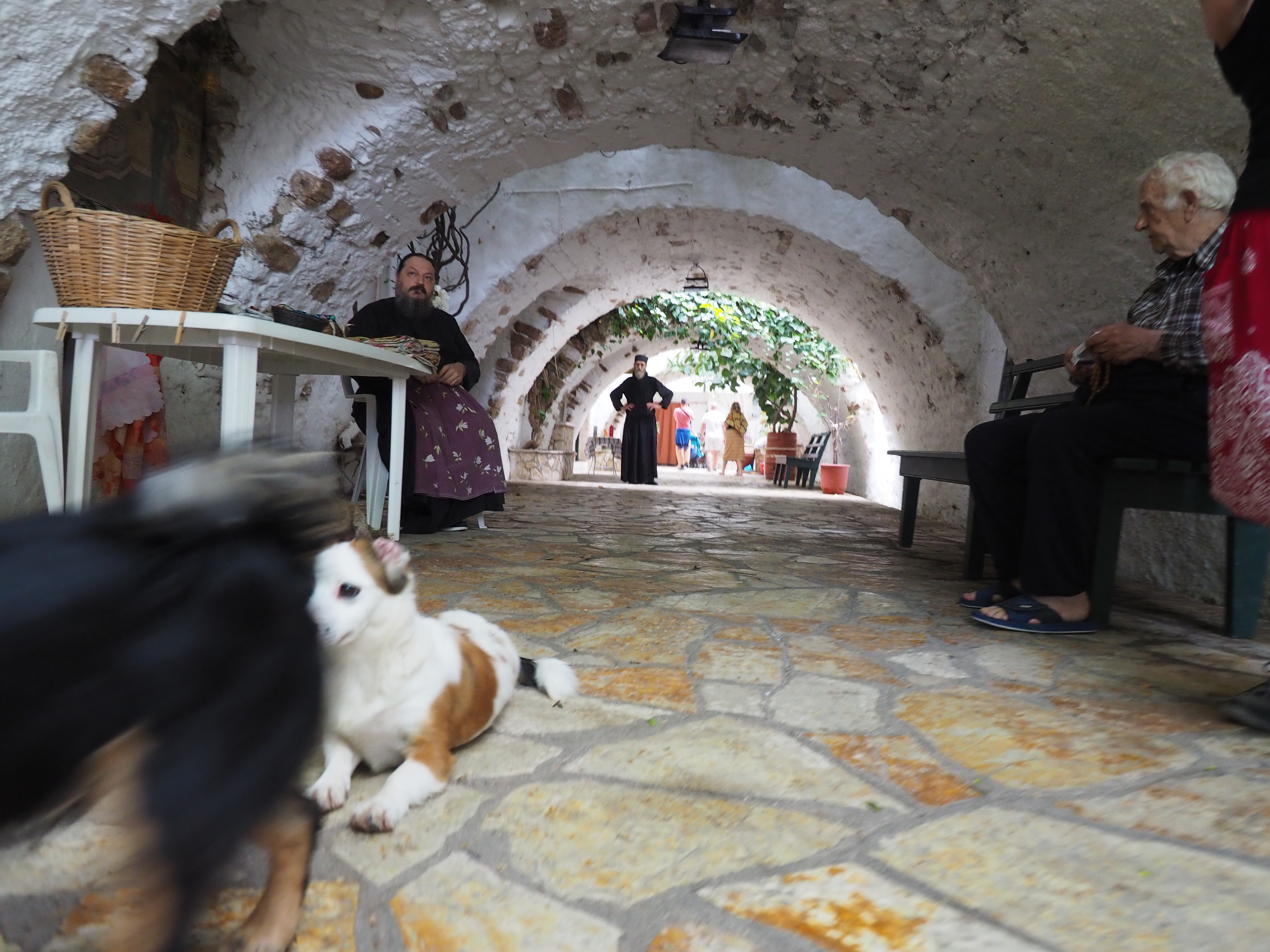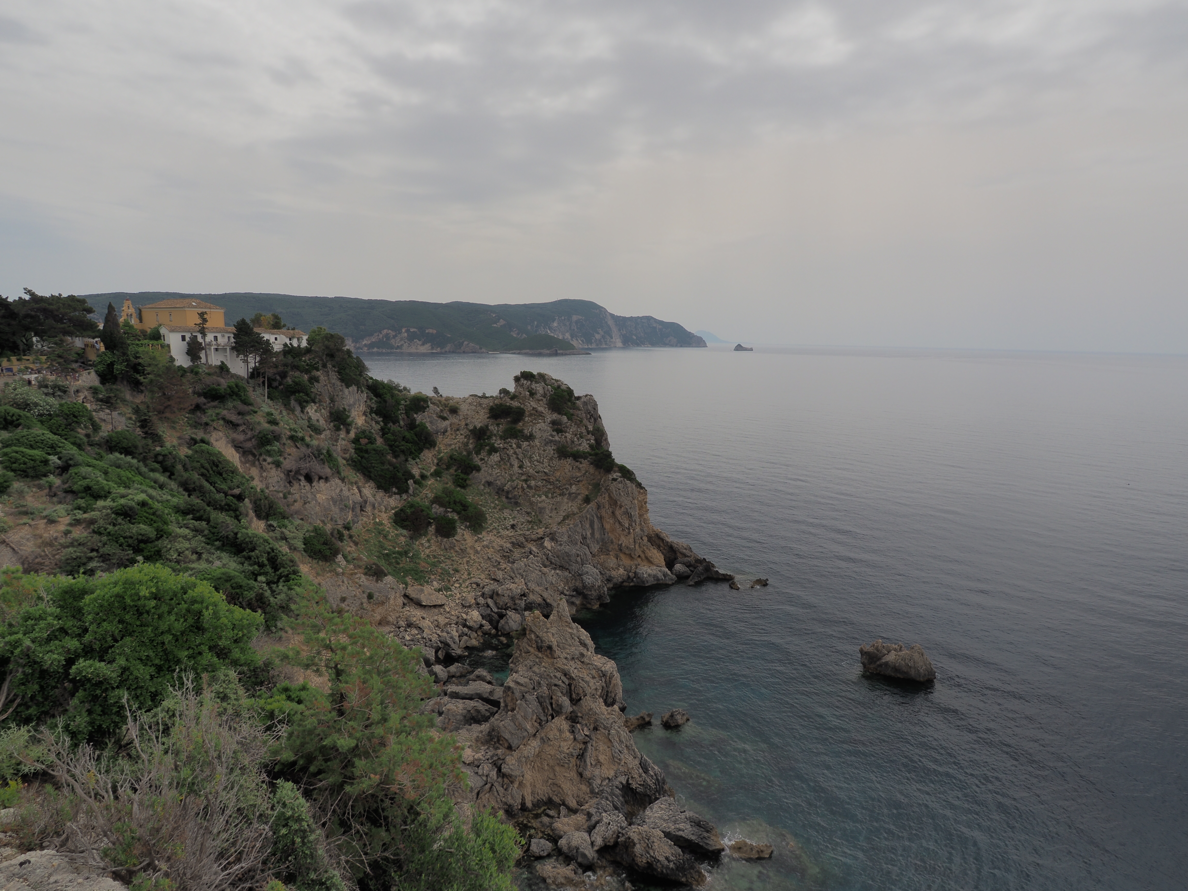Paleokastritsa gehört sicherlich zu den bekanntesten Zielen in Korfu. Neben weiten Stränden und zahlreichen Buchten gibt es hier das Kloster Panagia Theotókos tis Paleokastritsa aus dem 13. Jahrhundert. Es liegt auf dem Gipfel einer kleinen Halbinsel und kann mit einer gepflegten Gartenanlage aufwarten, die an einer Farbenpracht kaum zu überbieten ist. Hier leben zahllose Katzen und auch noch einige wenige Mönche. Man sollte unbedingt auf eine adäquate Kleidung achten (Knie & Schultern bedeckt), denn die Mönche können da schonmal etwas grantig werden.
