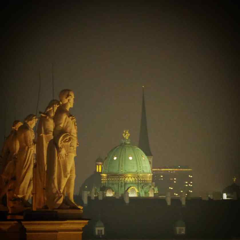 Dann kommt aber der absolute Höhepunkt, der eigentlich ausschließlich zu der Führung zugänglich ist. Über ein paar Treppen und eine niedrige Tür tritt man hinaus auf das Dach des Nhm.