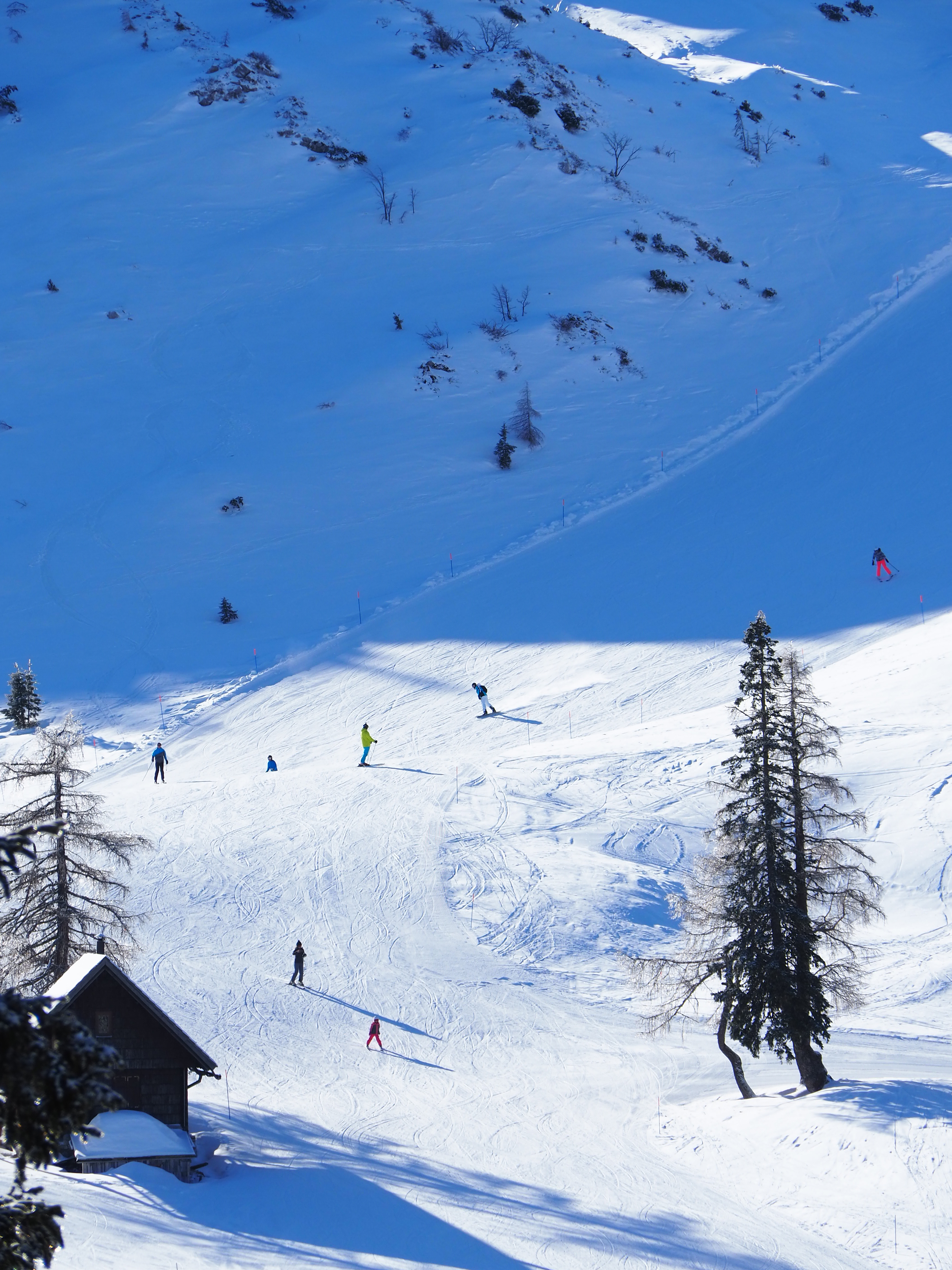 Wer an Skifahren denkt, kommt erstmal nicht wirklich auf Slowenien. Im Vergleich zu den großen Skigebieten, etwa in Tirol oder in der Steiermark, geht es in Bohinj auch eher beschaulich zu, bestens geeignet also für Anfänger und Familien. Denn das Vogel-Skiresort ist nicht nur kleiner als die großen Alpen-Parks. Es ist auch weniger Betrieb auf den Pisten.