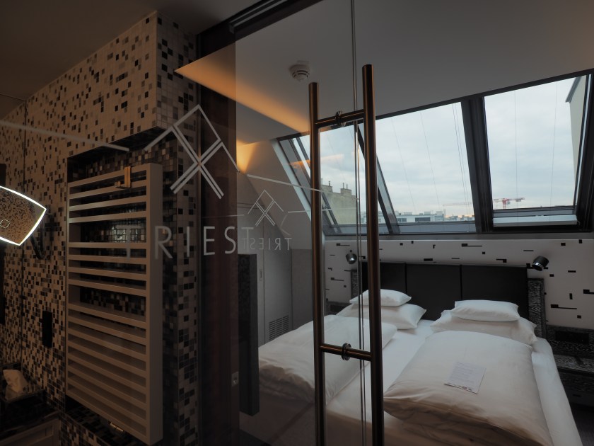 Wenn man an ein klassisches Hotelzimmer denkt, hat man einen ganz klassischen Aufbau im Kopf – meist liegt das Badezimmer direkt beim Eingang und irgendwie sind sie gerade bei neu gebauten Hotels immer sehr ähnlich. Doch schon die Grundstruktur einer 300 Jahre alten Postkutschenstation legt nahe, dass das im Triest anders ist. Die Zimmer sind alle individuell verwinkelt und immer mit einem besonders großzügigen Badezimmer ausgestattet.
