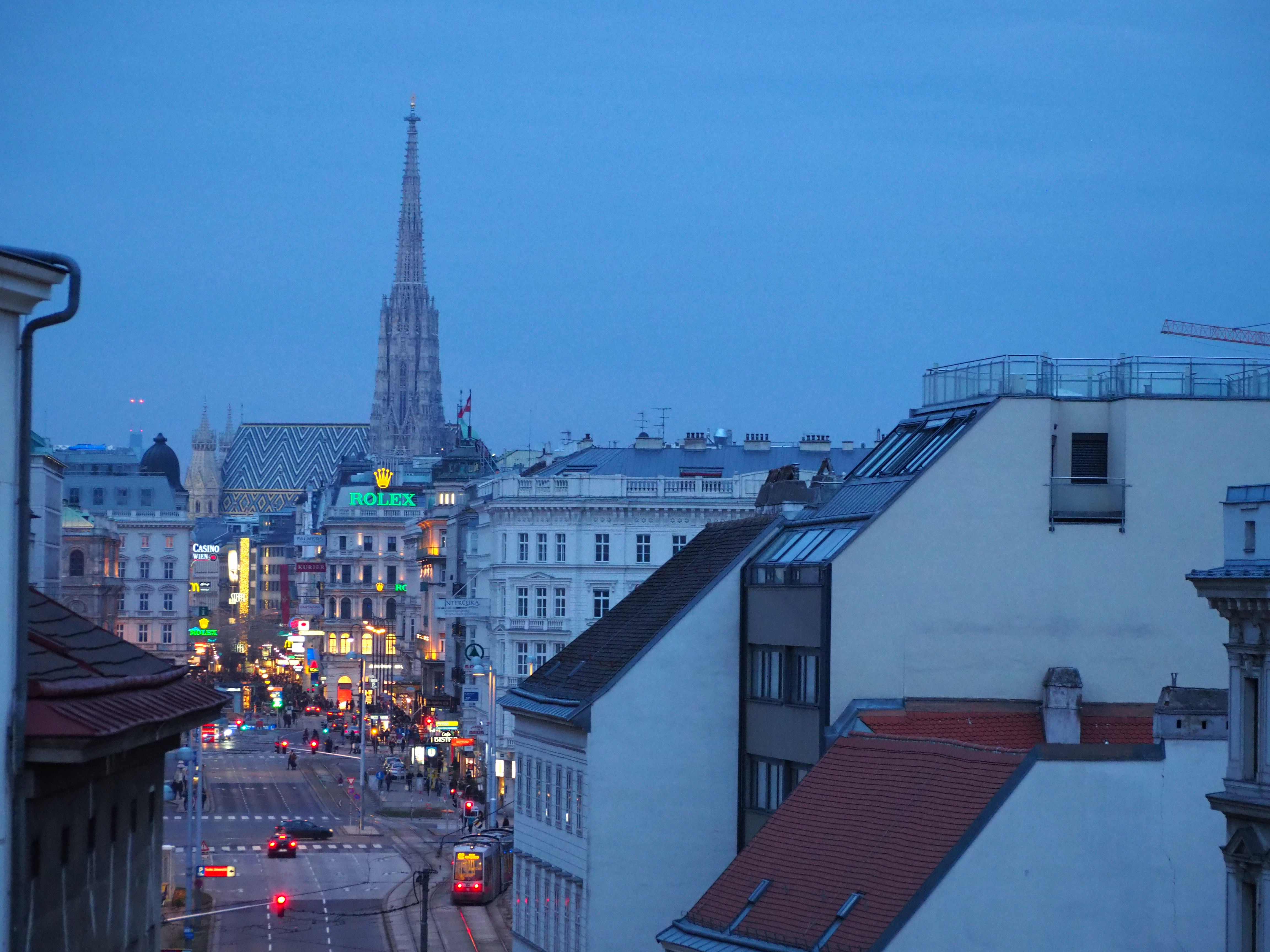 Bei den Suiten gibt es mehrere mit Balkon, einige davon sogar mit einem direkten Blick auf die Kärntner Straße und den Stephansdom, eines sogar mit einer Lesekoje mit Panoramafenster. Die größte Suite liegt allerdings zum Hof hin und verfügt über einen eigenen – übrigens beeindruckend ruhigen – Dachgarten.