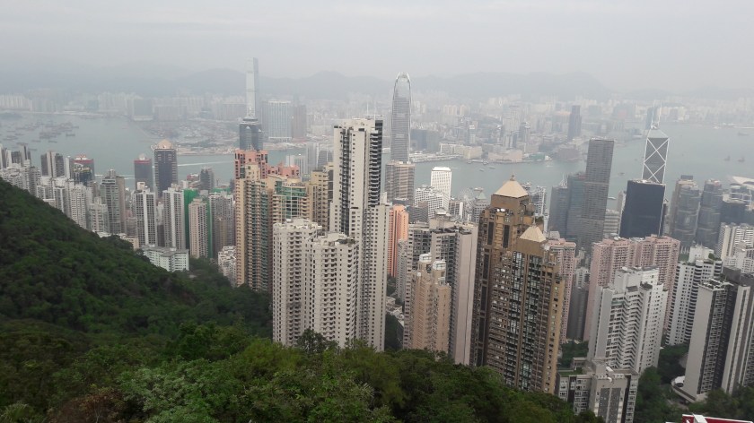 Direkt beim Hong Kong Park kann man den nächsten Ausflug starten, den man wohl gemacht haben muss, wenn man mal in der Stadt war. Denn oft muss man etwas länger warten, bis man die Zahnradbahn hinauf auf den Peak besteigt. Oben erwartet einen – zumindest wenn es nicht neblig ist – ein gigantischer Blick auf die Skyline – und ein Einkaufszentrum. Viele gehen dann nicht weiter, setzen sich in eines der teuren Cafés und fahren dann wieder hinunter.