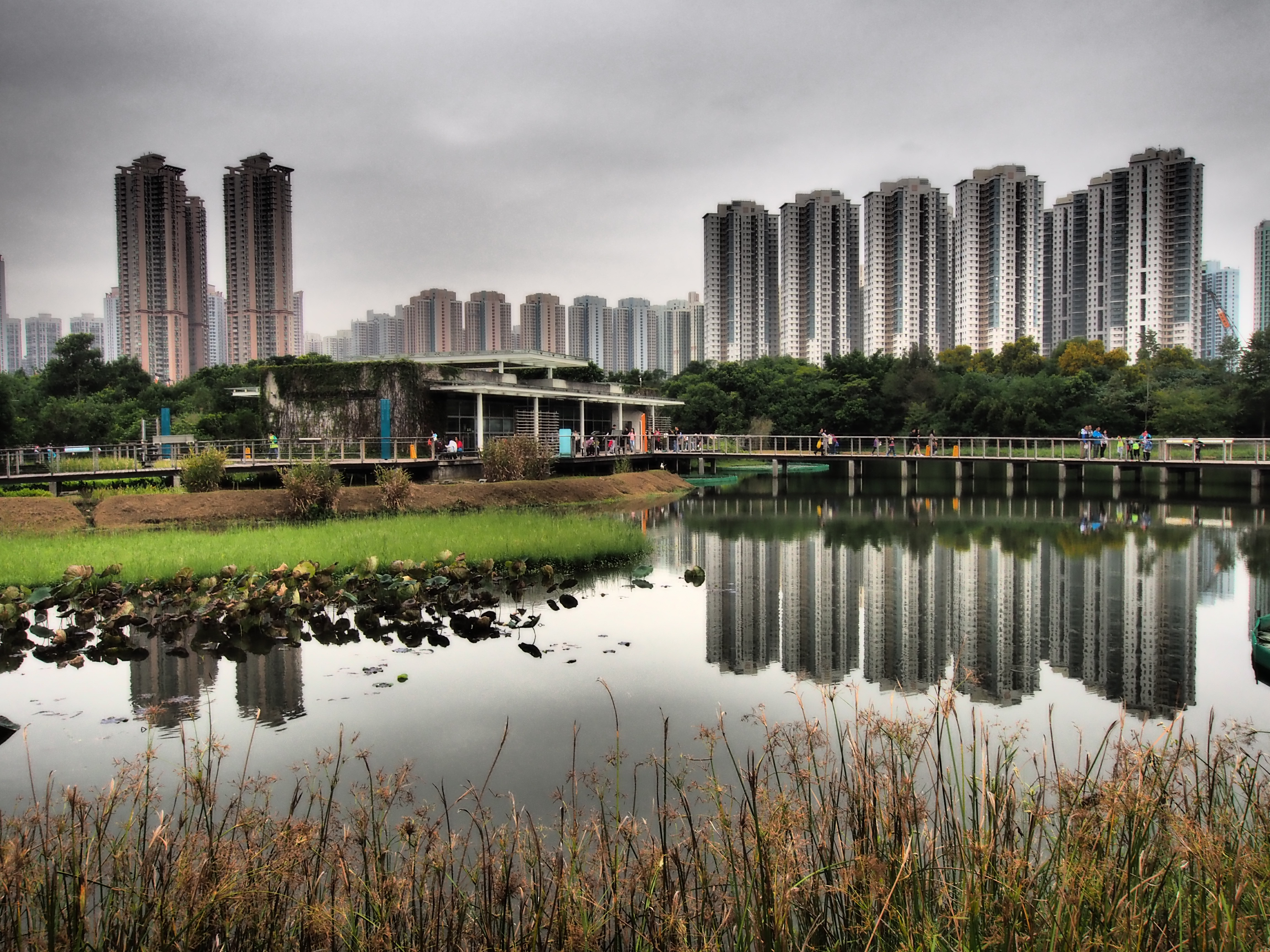 Als die Engländer nach Hong Kong kamen, war hier noch größtenteils eine Sumpflandschaft. Die hat man im Hong Kong Wetland Park versucht zu erhalten. Und so ist es gelungen, eine beeindruckende Vielfalt wildlebender Vögel und anderer Tiere hier anzusiedeln. Man findet hier zahlreiche Pavillions, von denen aus man all die King Fisher, Kormorane und anderen Vögel super beobachten kann (einige Plätze sind sogar mit Ferngläsern ausgestattet und Mitarbeiter erzählen von den Tieren). Ein bisschen fühlt man sich wie in der Wildnis. Ich war jedenfalls irritiert, als sich auf dem Rückweg die Hochhäuser des nahegelegenen Wohngebiets auf den Wasserflächen spiegelten.