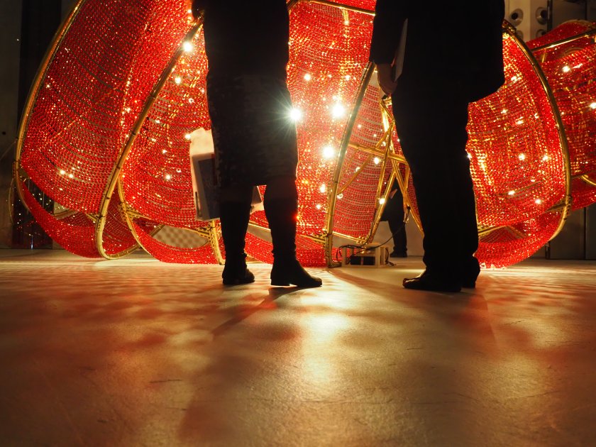 Ein weiteres Werk, das besonders ins Auge fällt, ist The Death of Marat von He Xiangyu. Die am Boden liegende Figur soll eine Auseinandersetzung mit dem Kulturtransfer zwischen Ost und West repräsentieren – ich hab mich aber sehr beklommen gefühlt, als die Menschen um die am Boden liegende (echt wirkende) Wachsfigur herumstanden und keiner Anstalten machte um zu sehen, ob man helfen kann.