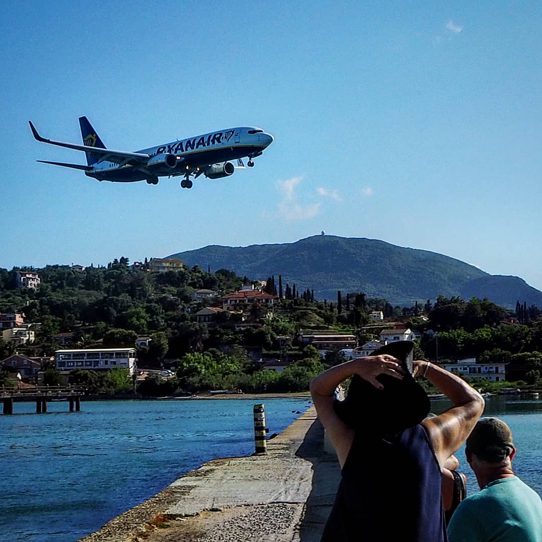 Die Ruhe, die das Kloster ausstrahlt, wird etwa alle 15 min durch startende und landende Flugzeuge unterbrochen, denn die Landebahn des Flughafens CFU beginnt keine 500 m entfernt. Dazwischen liegt nur ein kleiner Fußgängerdamm, auf dem sich die Planespotter tummeln. Die Flieger donnern hier bei der Landung nur wenige Meter über den Köpfen der Zuschauer.
