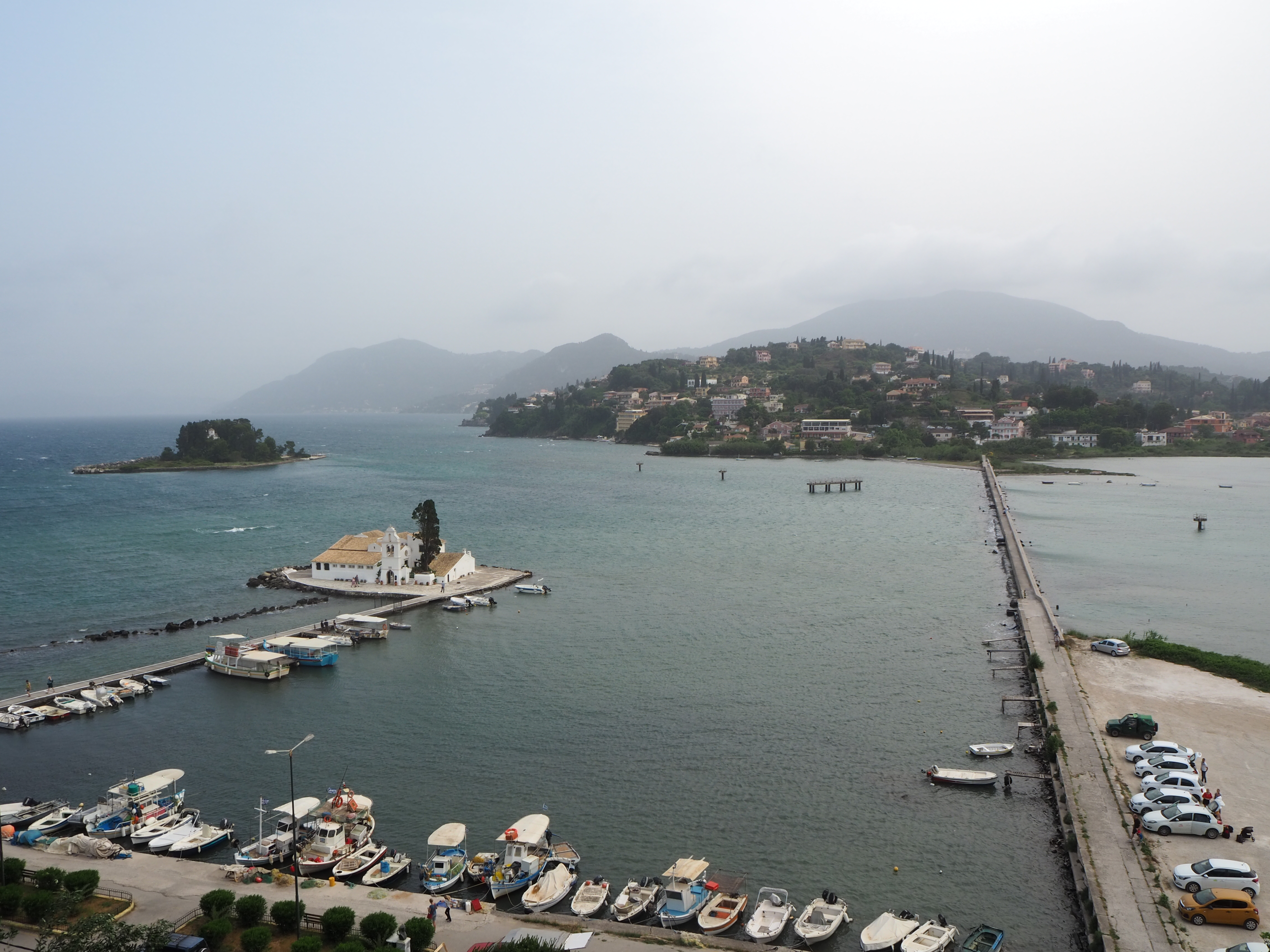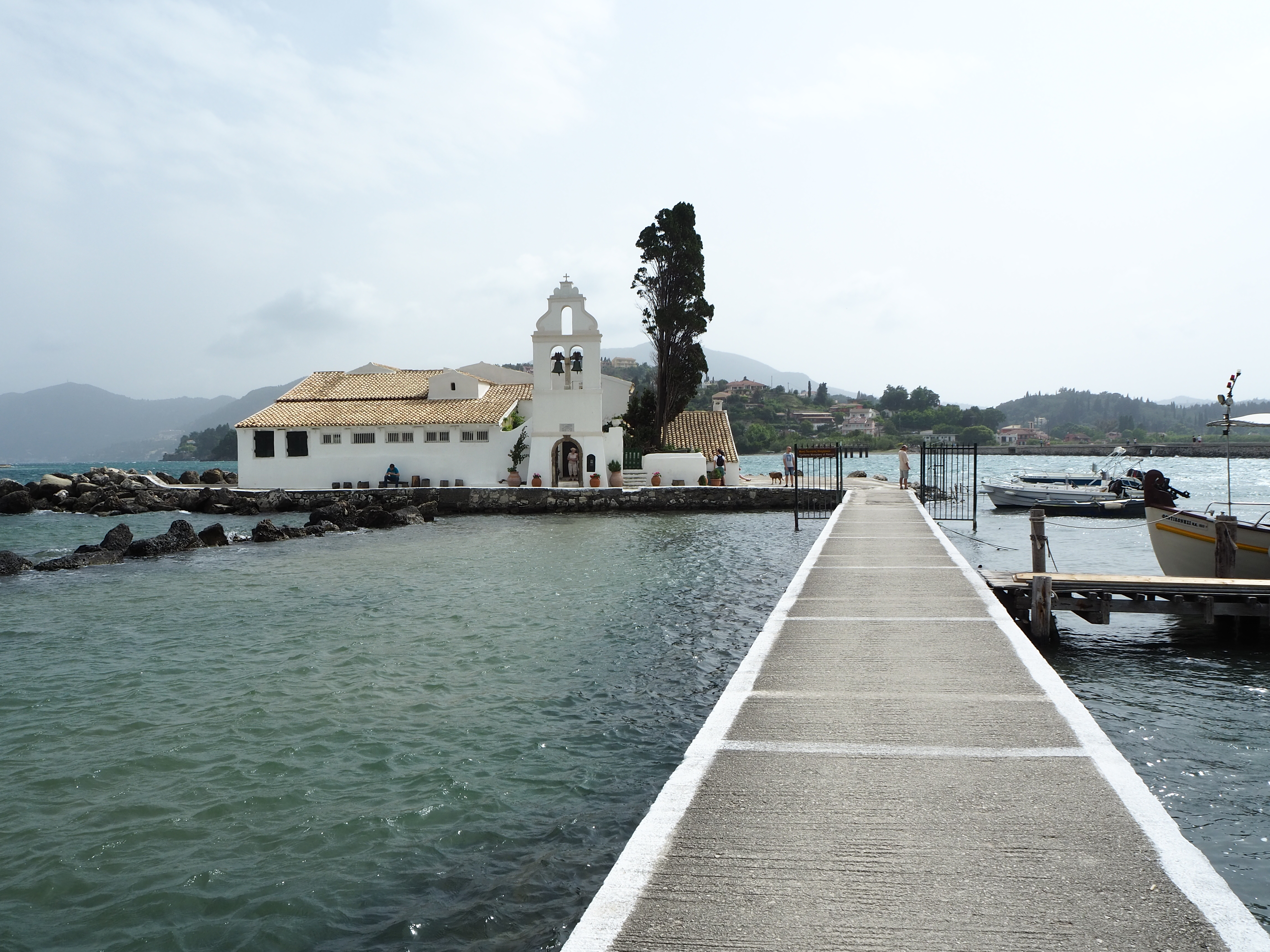 Vom Steg zum Kloster legen auch die Shuttle zur unweit gelegenen Mäuseinsel ab, die wohl einer der Lieblingsorte von Kaiserin Elisabeth auf Korfu war. Wir haben uns den Weg allerdings aufgrund des intensiven Seegangs erspart (Preise normalerweise zwischen 5 und 10€).