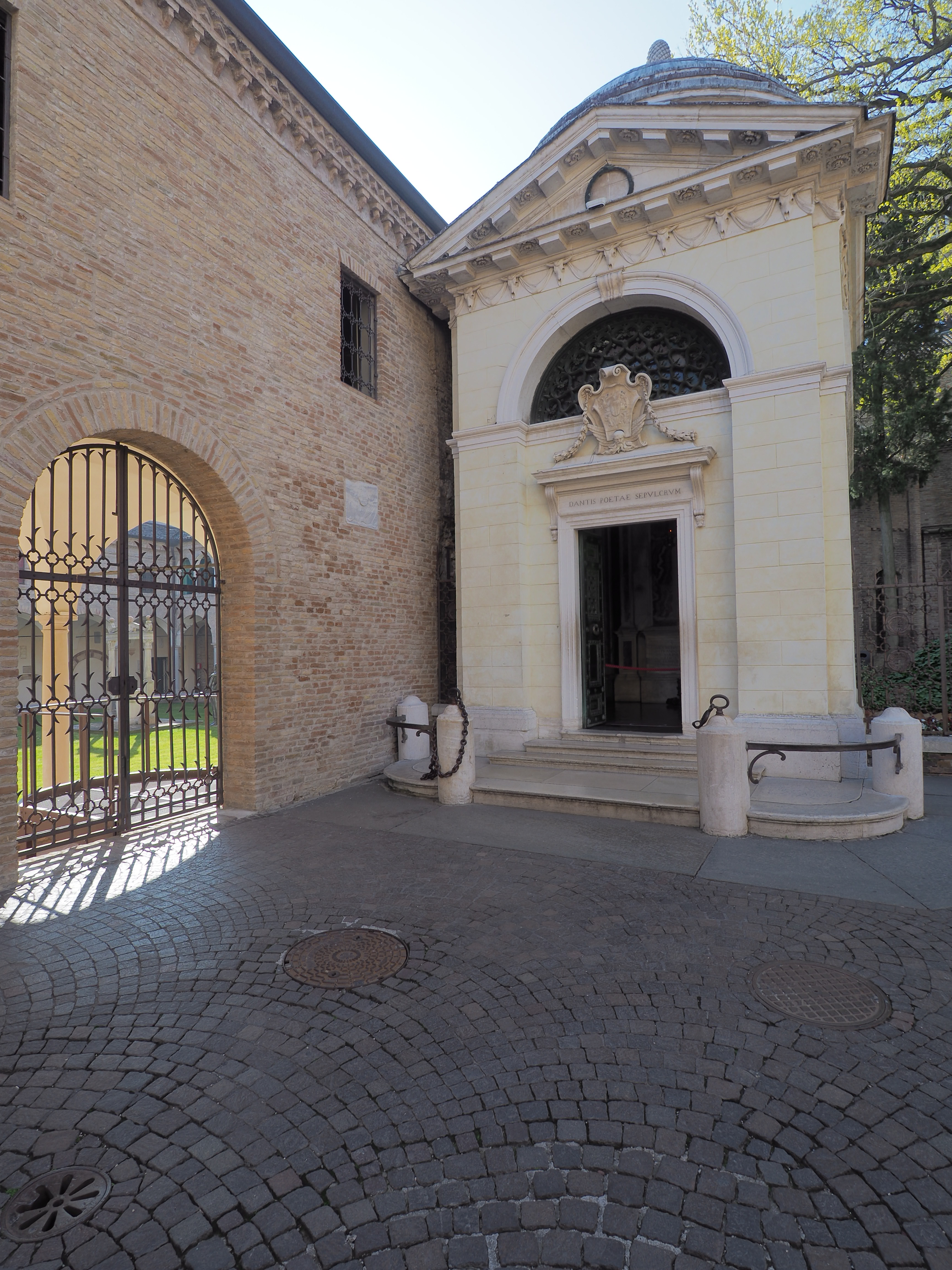 Am 13. September 1321 starb Dante in Ravenna. Sein kleines Grabmal direkt auf dem Gelände des ehemaligen Franziskaner-Klosters hat eine bewegte Geschichte. 1519 wollten die Medici Dantes Leichnahm in seine Heimat Florenz zurückholen. Den Franziskanern allerdings gelang es, dies zu verhindern, indem sie die Leiche aus dem Sarkophag nahmen und im benachbarten Kreuzgang bestatteten.