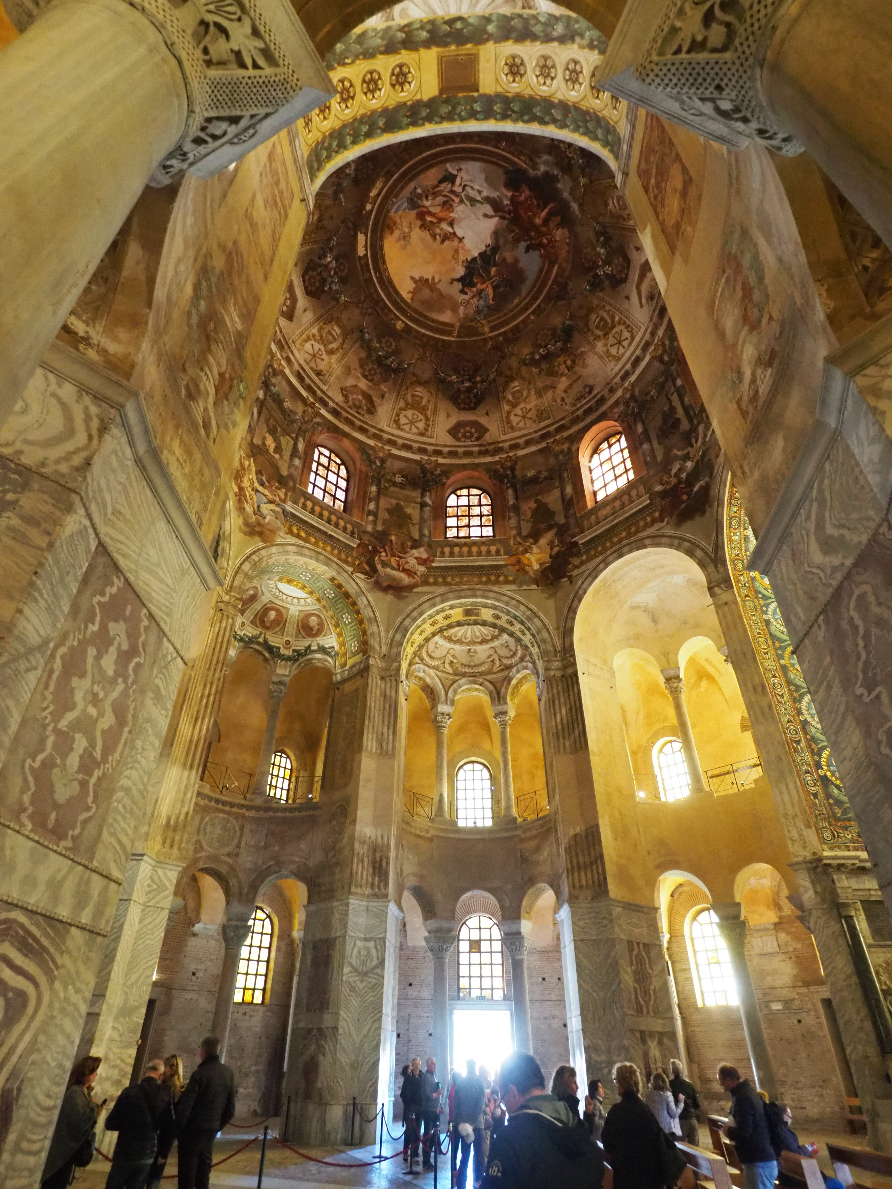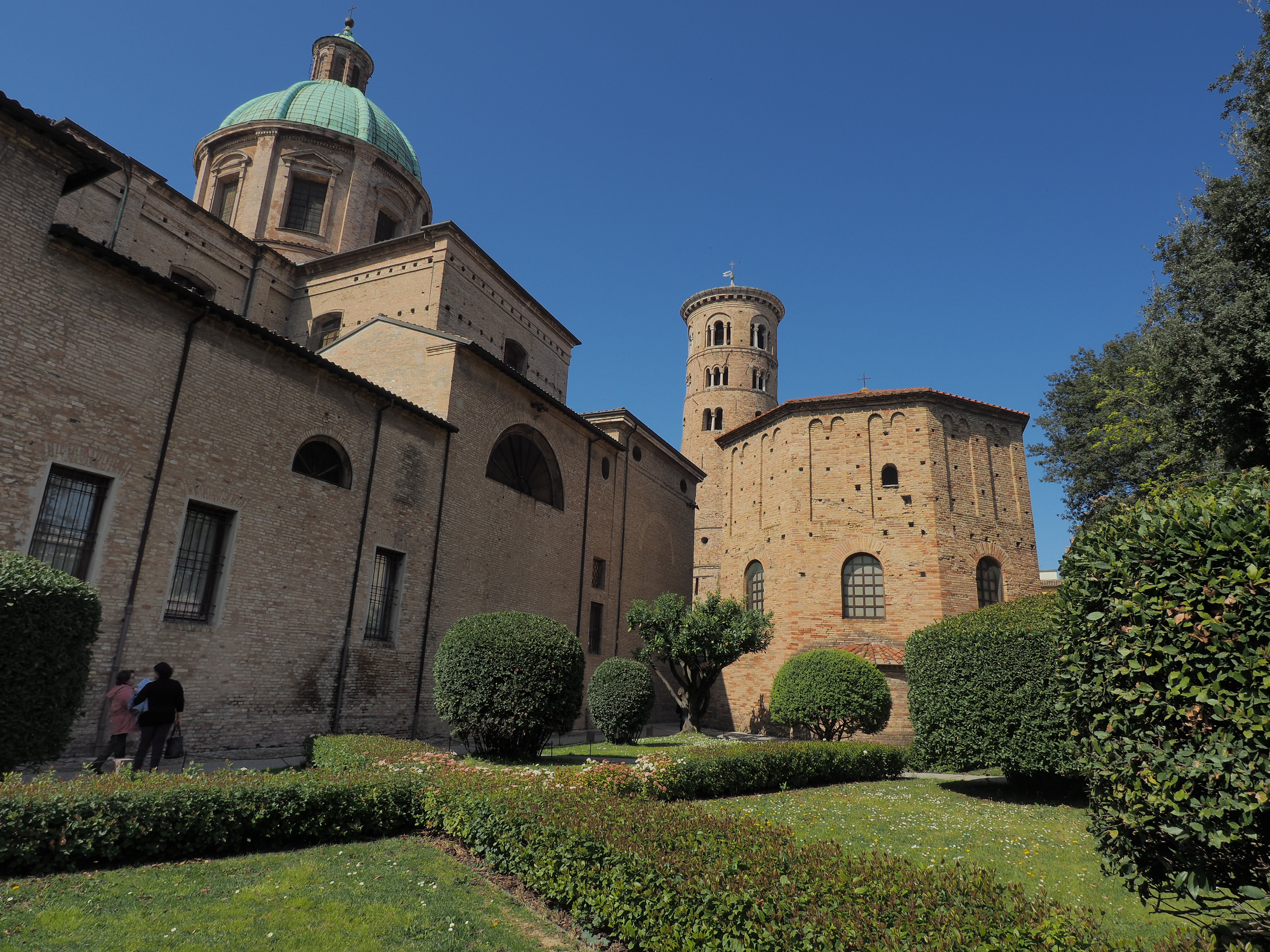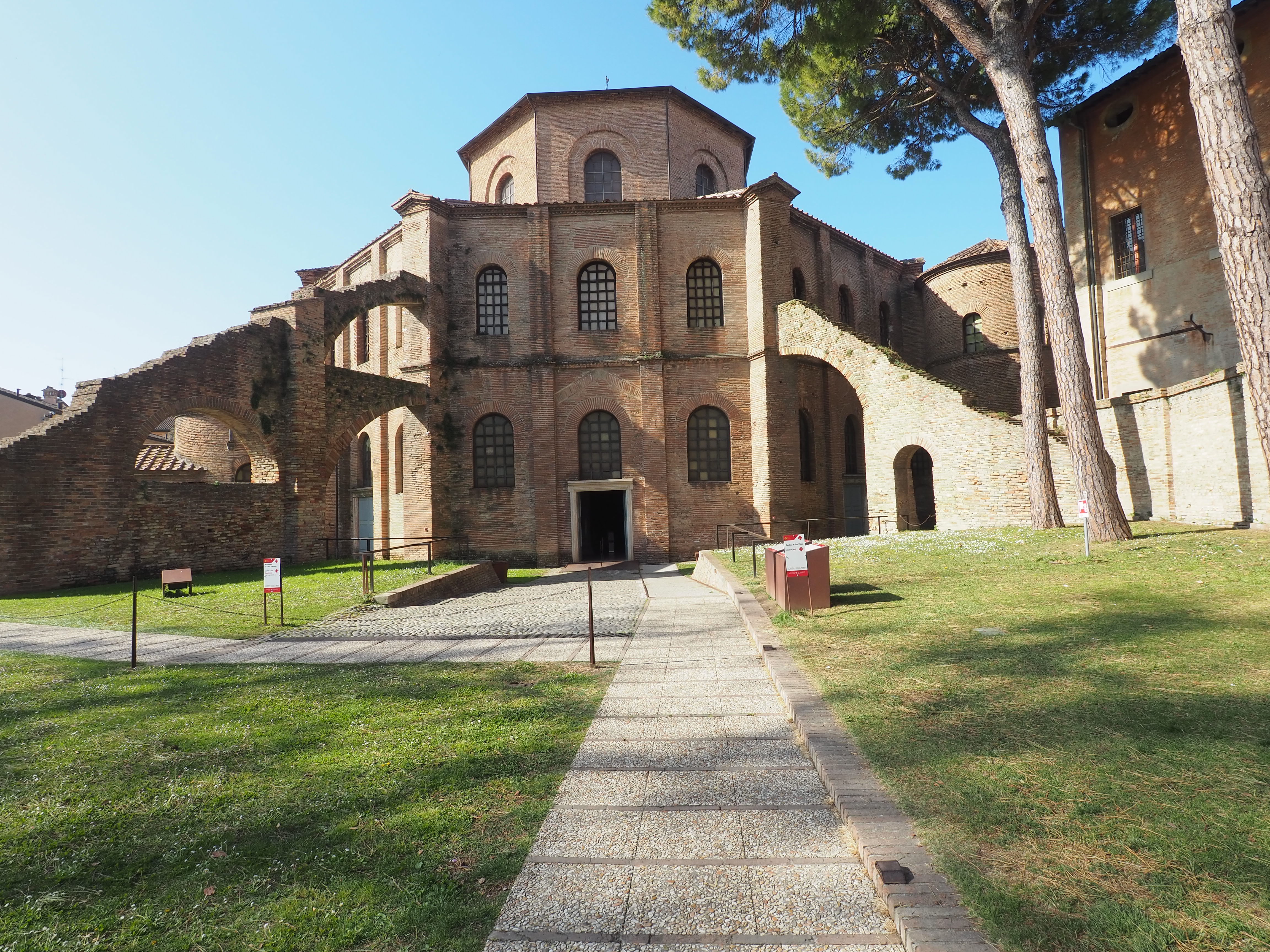 Die Basilika San Vitale stammt aus dem 6. Jahrhundert. Der Grundriss der Kirche unterscheidet sich im Wesentlichen von späteren Kirchenräumen aufgrund seines oktogonalen Grundrisses mit einem zentralen Kuppelbau.