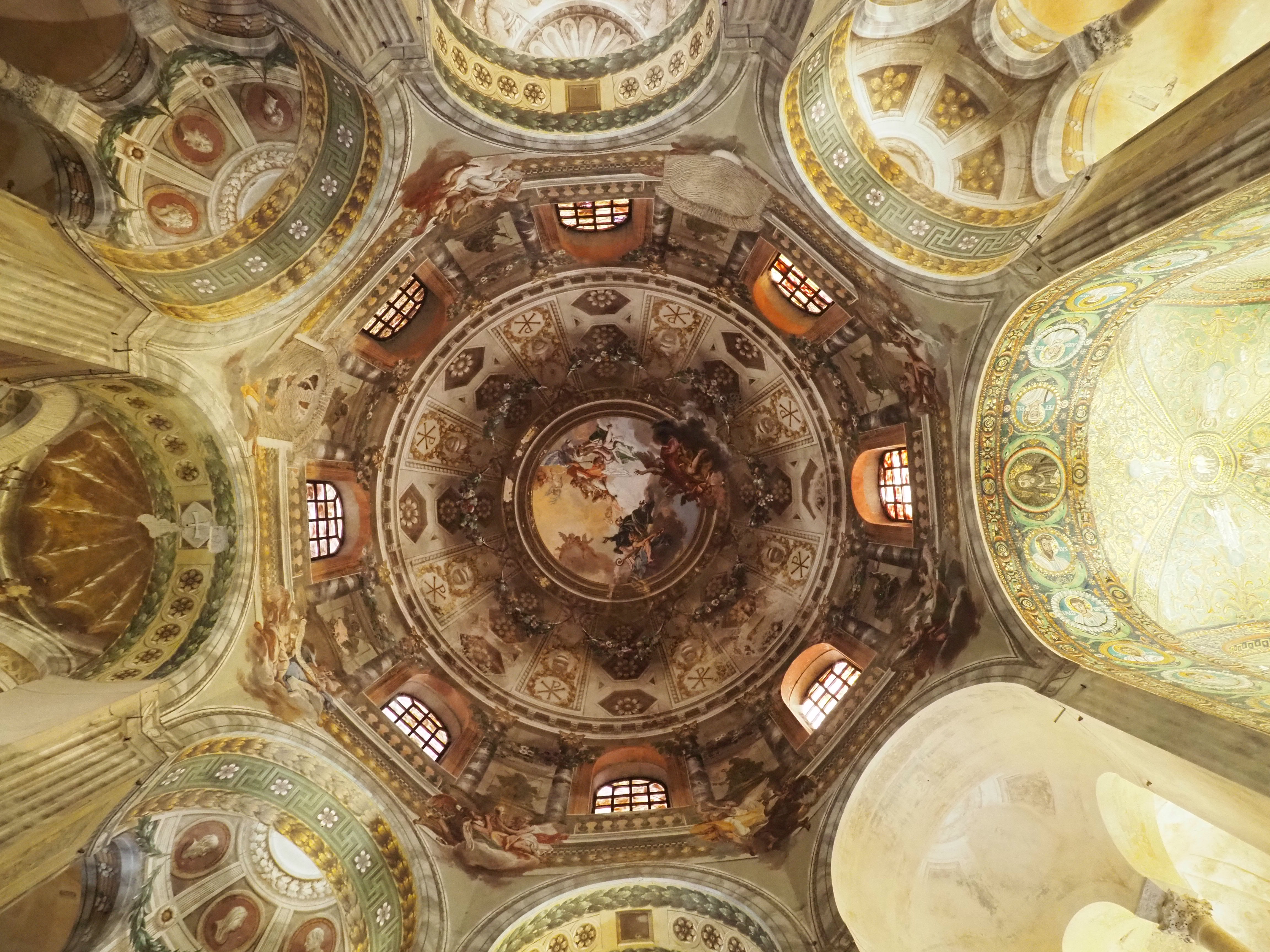 Das oktogonale, orthodoxe Baptisterium geht wohl auf das 4. oder 5. Jahrhundert und damit auf die Ursprünge der Kathedrale von Ravenna zurück. Äußerlich ist es ein einfacher und unscheinbarer Ziegelbau, der Eindruck beim Betreten ist dann aber schier überwältigend.