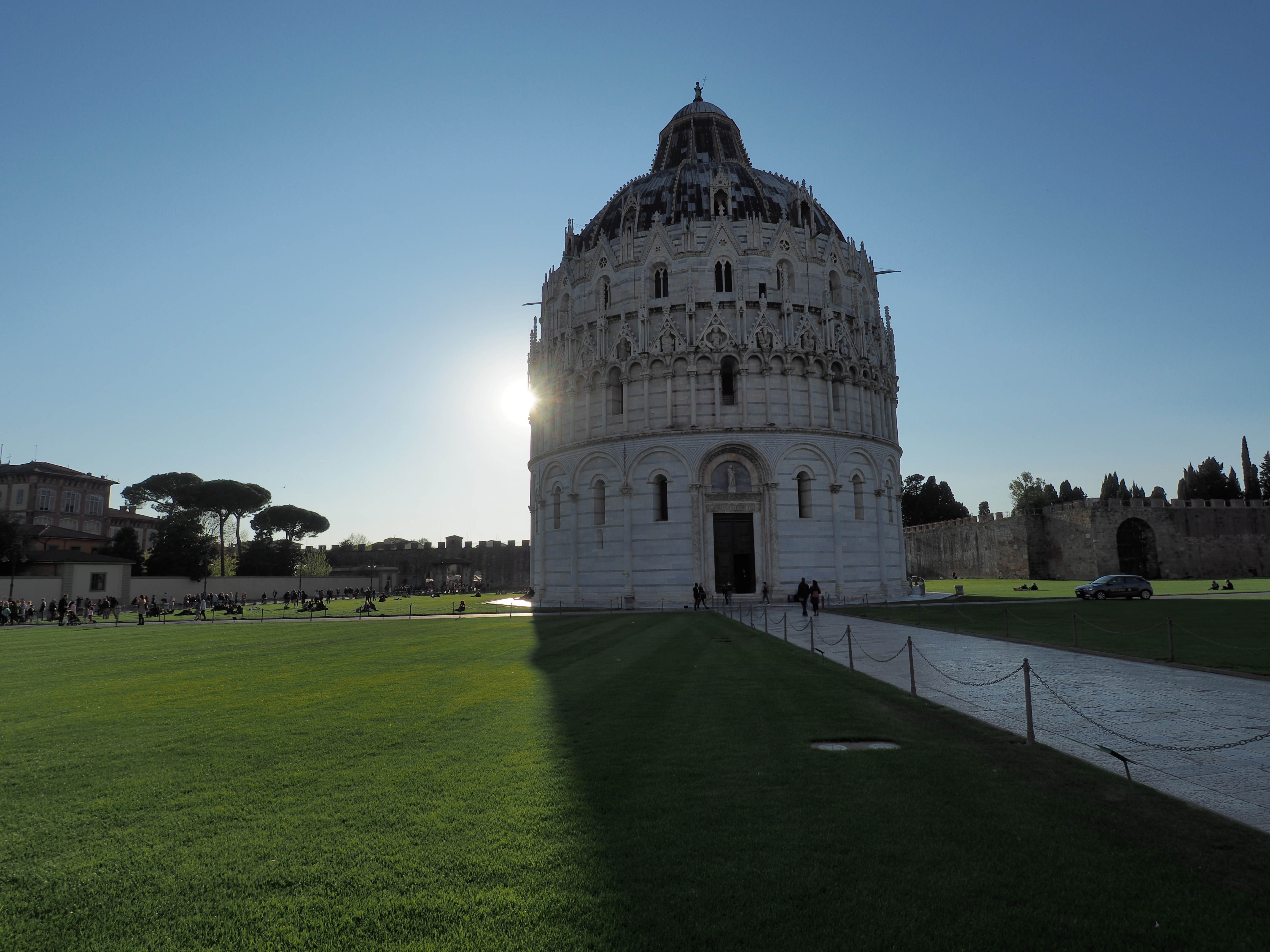 Das Baptisterium in Pisa ist die größte Taufkirche der christlichen Geschichte. Das Gotische Kunstwerk ist 55 m hoch und hat einen Umfang von 107 m.