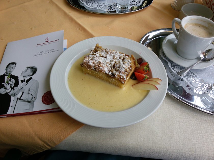 Seit dem Peter Alexander Film ist das Weiße Rössl ein echter Pilgerort für Fans und Busgruppen. Man muss allerdings nicht unbedingt im Hotel einchecken, um den vollen Kitschfaktor zu erreichen. Mit ein bisschen Glück und Geduld kann man auch einen Platz auf der Seeterrasse ergattern – der Kuchen ist absolut großartig.
