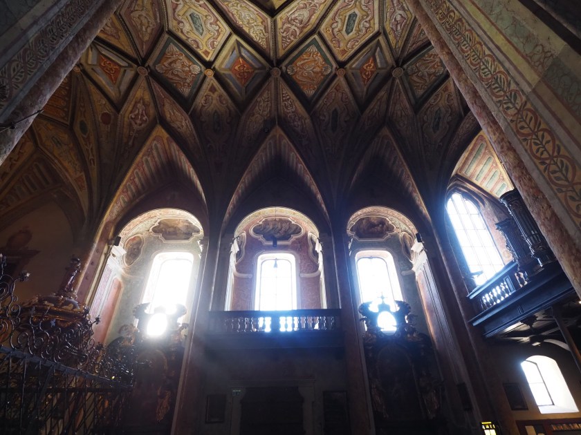 Die heutige Kirche stammt aus der Zeit nach 1429. Es ist eine weite, zweischiffige Halle, die mit gotischen, ornamentalen Fresken vollständig bedeckt ist.