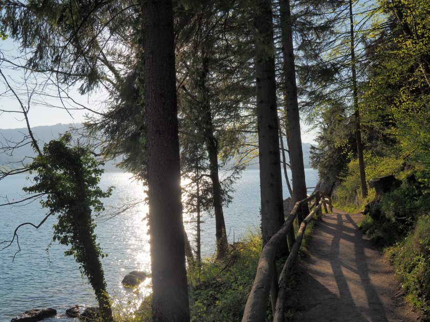 Fernab der großen Touristenströme von St. Wolfgang kann man die Bürglsteinpassage genießen. Sie liegt schon am Rand von Strobl. Hier haben wir dann auch das Auto stehen gelassen. Die Runde um den Bürglstein ist rund 2,6 km lang, von hier aus hat man einen grandiosen Panoramablick über den gesamten See, bis hinauf zum Schafberg.