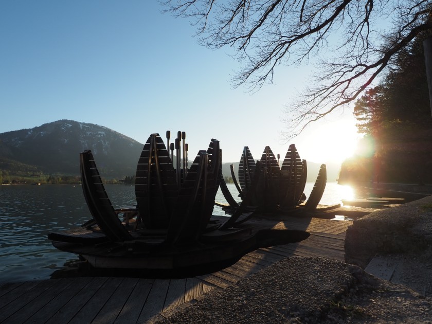Die Landschaft des Salzkammergut mit den vielen Seen lädt ja quasi zu echten Kitschfilmen ein. Meine Oma hat sie früher geliebt – all die leicht kitschigen Heimatfilme, in denen als Höhepunkt Peter Alexander singt. Und so ließ ich es mir natürlich nicht nehmen, dem legendären Weißen Rössl in Sankt Wolfgang einen Besuch abzustatten.