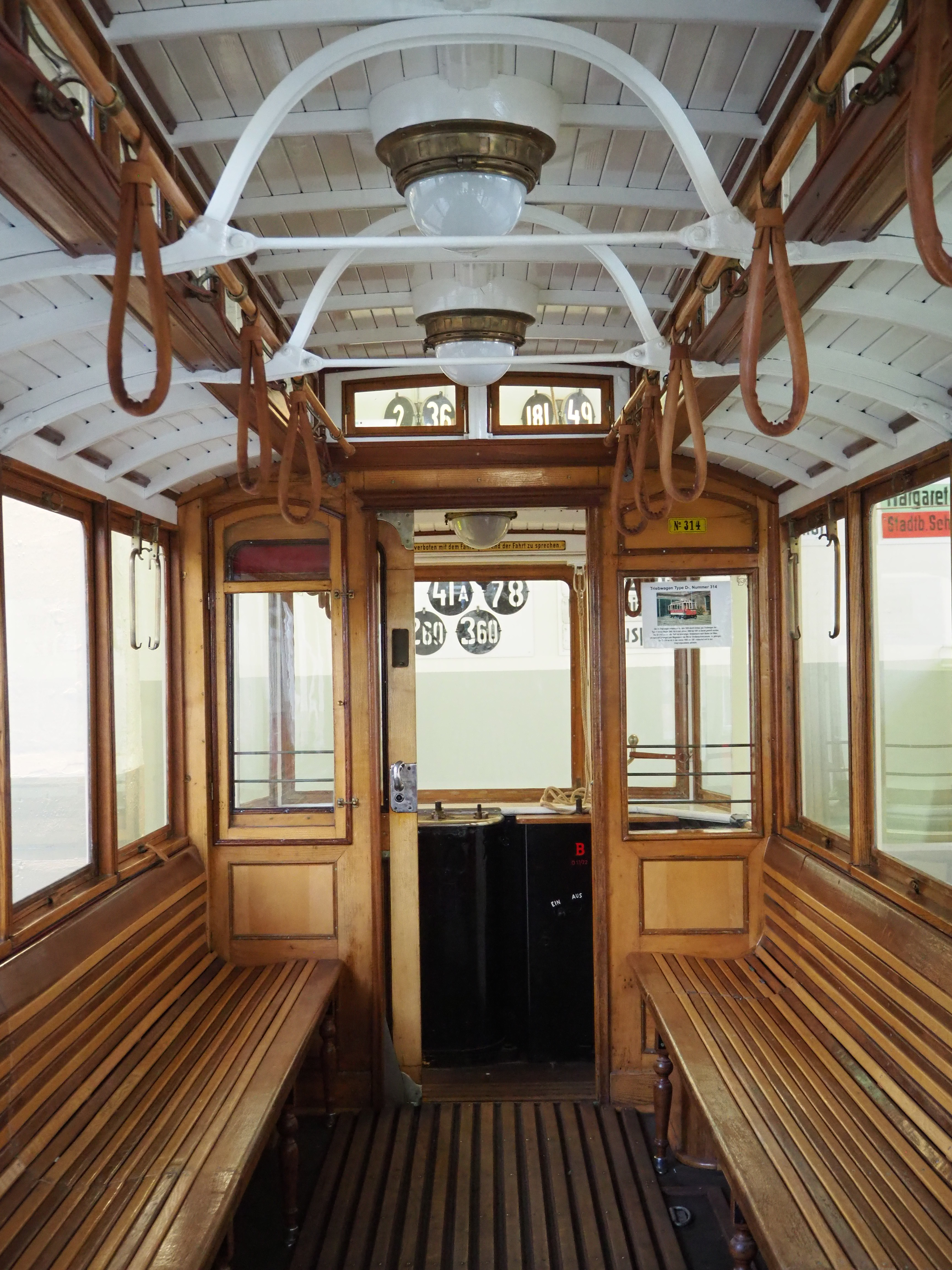 Die Straßenbahnen des Typs D1 stammen aus den Jahren 1925/26. Sie entstanden durch Umbauten ursprünglich 1899-1902 angeschafften D-Wagen. Mit ihren schicken Holzbänken und ganz besonders mit den Messinglampen verliehen sie der „Elektrischen“ ein besonderes Flair wie ich finde.