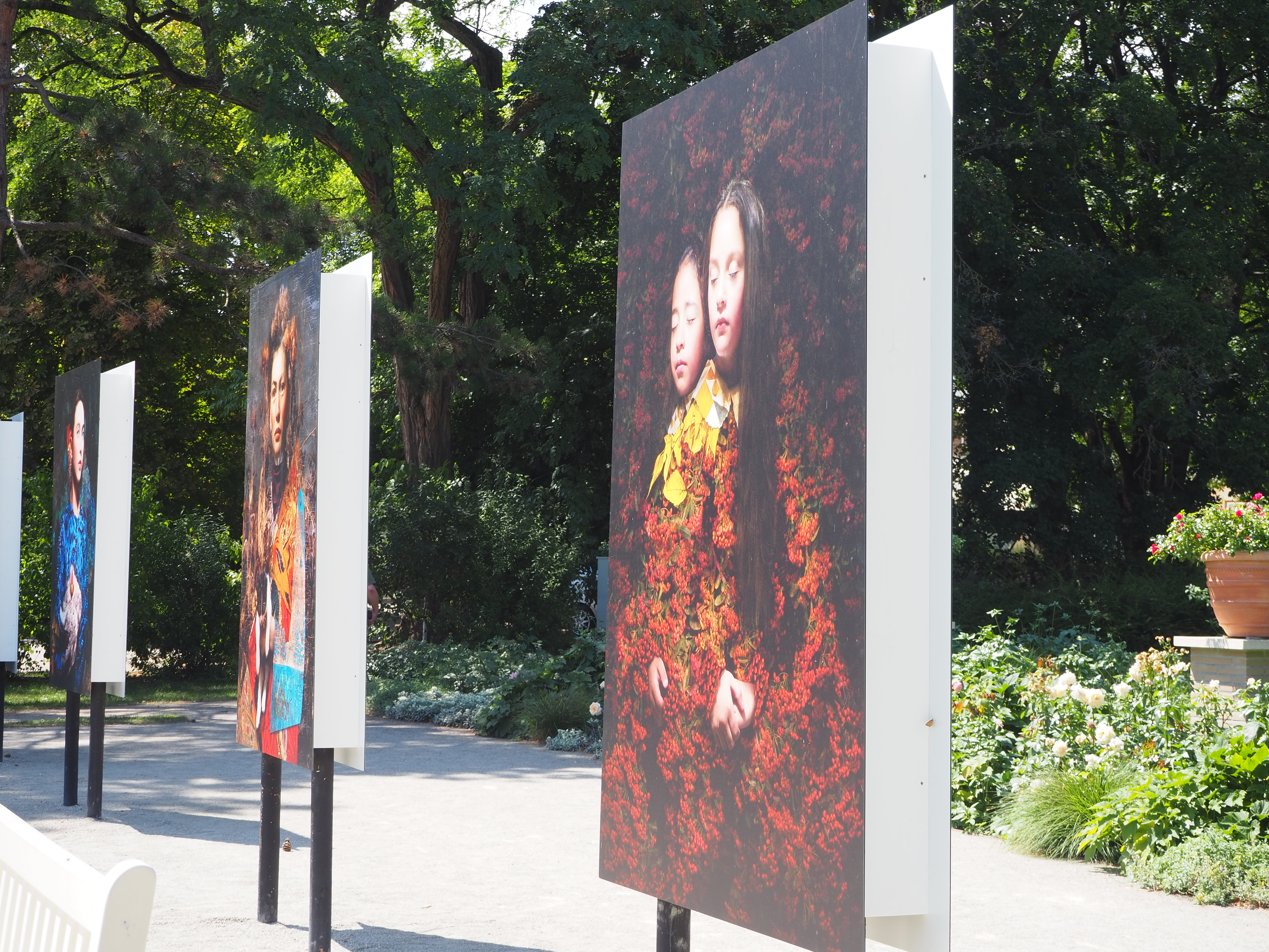 Entlang der Festivalroute beschäftigen sich Fotografen mit dem Thema Natur, deren Schönheit, aber auch deren brutaler Verletzlichkeit. Viele dieser Themen beschäftigen sich mit dem Diskussionsthema unserer Zeit – Philippe Bourseiller zeigt etwa die Vergänglichkeit der Eiswelten und setzt diese in einem Gegensatz zum Teich im Doblhoffpark. Mich persönlich hat die Serie „Aus den Erzählungen“ von Nina Gorfer und Sarah Cooper besonders beeindruckt. Die beiden Fotografinnen setzen die Porträtfotografie in Zusammenhang mit klassischer Porträtmalerei – sie zeigen ihre Models in etwa im Stile von Gustav Klimt.