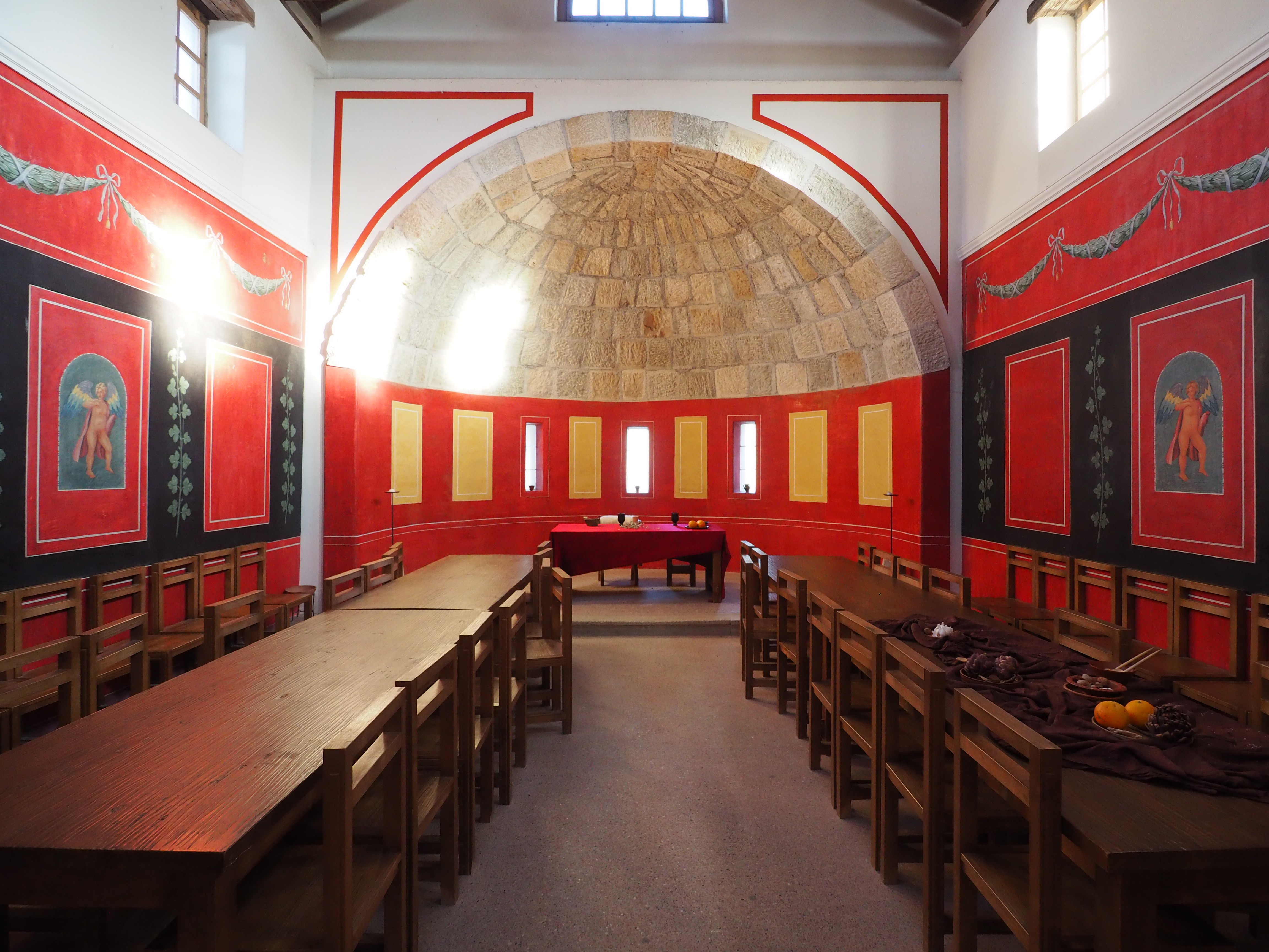 Von hier aus erreicht man die Gebäude des mit viel Liebe zum Detail rekonstruierten Stadtviertels. Im Mittelpunkt steht natürlich das Forum mit seiner Forumstherme, die voll funktionsfähig ist, inklusive Fußbodenheizung und Latrine.