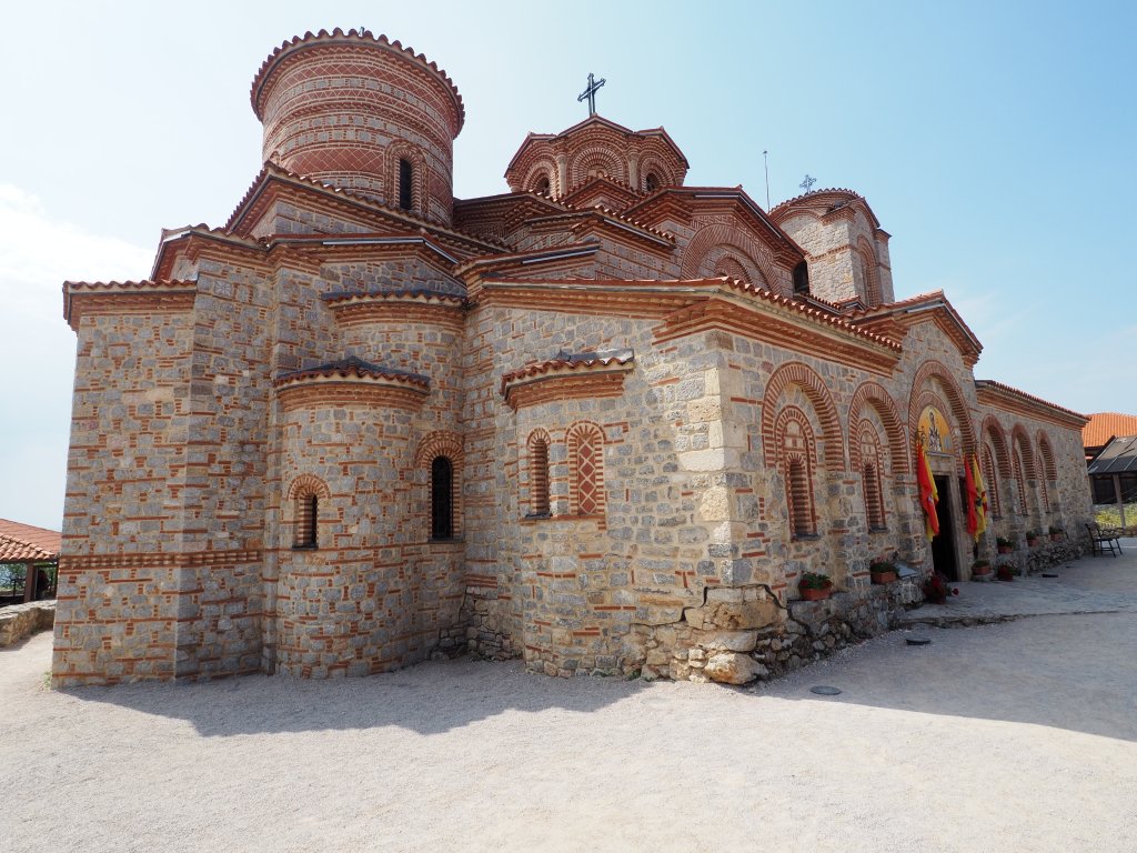 Spektakulär am Rande eines Felsvorsprungs oberhalb des ehemaligen Fischerdorfs Kaneo liegt die kleine Kirche St. Johannes von Kaneo. Sie zählt zu den wohl meistfotografierten Sehenswürdigkeiten von Ohrid. Errichtet wurde sie vermutlich im 13. Jahrhundert, es sind Fresken aus dem 14. Jahrhundert erhalten – und dass das so ist, grenzt an ein Wunder, da sie mehrfach von den Osmanen zerstört und im 17. Jahrhundert schließlich aufgegeben wurde. Es ist Bulgarischen Siedlern zu verdanken, dass die spektakuläre Kirche heute noch zu sehen ist. Im 19. Jahrhundert begannen sie damit, das kleine Monument zu restaurieren.