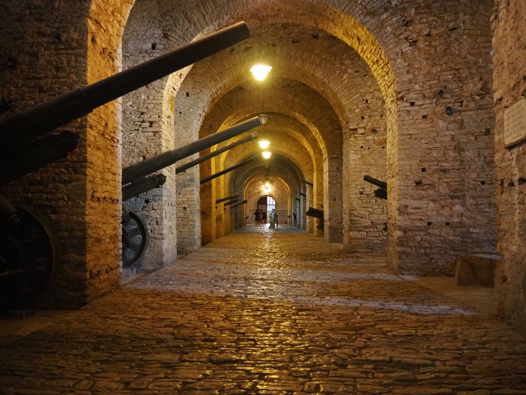 In der Burg ist ein Waffenmuseum untergebracht. Schon wenn man die Anlage betritt, sieht man sich massiv unter Beschuss. In jedem der Nischen des großen Ganges steht eine Kanone, zeitlich in aufsteigender Richtung sieht man unter anderem auch Geschütze aus dem Ersten und Zweiten Weltkrieg und schließlich auch einen kleinen, italienischen Panzer, der an die Besatzung durch die Italiener erinnert.