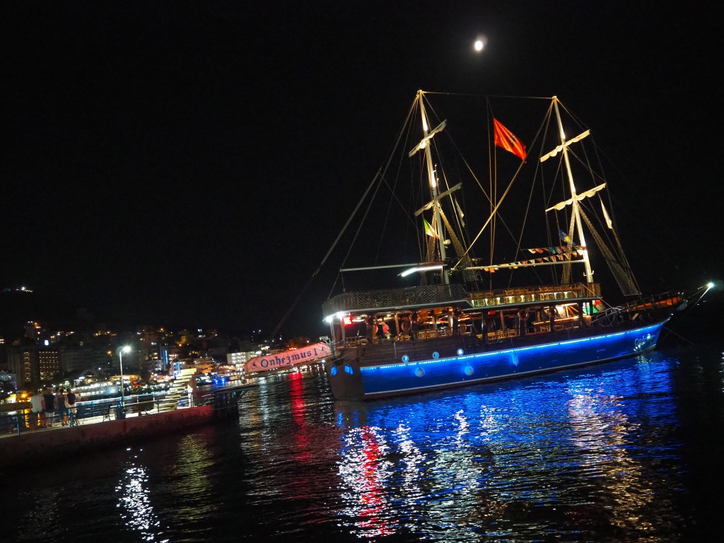 Wie es in Urlaubsorten häufig ist, gibt es tagsüber zahlreiche Aktivitäten wie Quadfahren oder Jeep-Safaris in die Umgebung von Saranda. Auch andere (für mich) Klischees werden erfüllt. Geht man abends an der langen Promenade entlang, hört man aus jedem kleinen Verkaufsstand laute Musik, so dass man nach einem kurzen Moment schon kaum noch unterscheiden kann, was woher kommt. Es dröhnt der Bass über die gesamte Bucht, Lokale wechseln sich mit Discos ab – leider so gar nicht mein Fall.